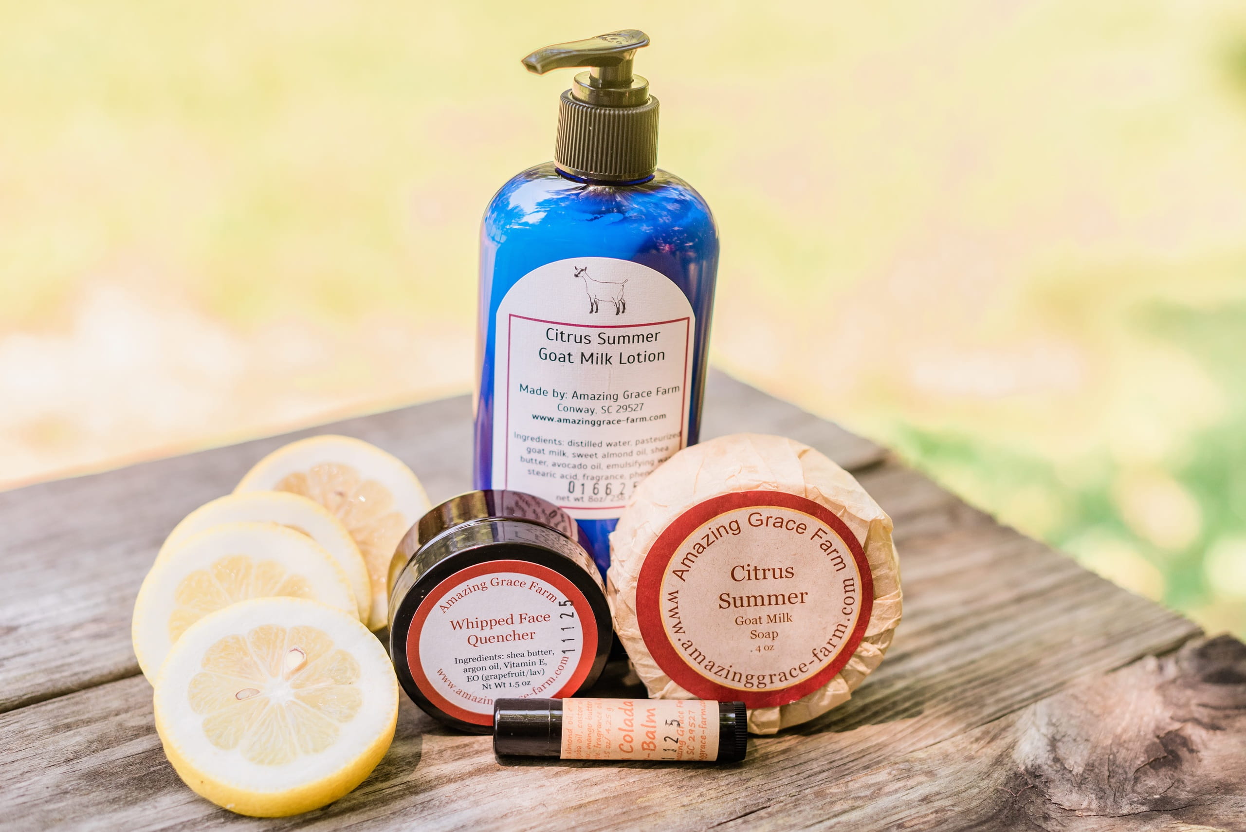 | Lotion | Amazing Grace, Citrus Summer, Lavender, Lavender Honeysuckle, Peppermint, Simply |